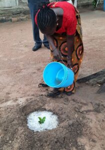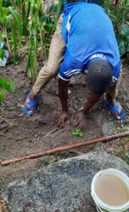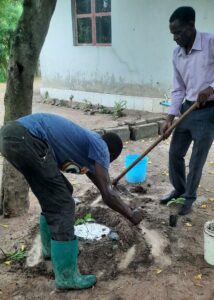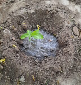 Mit Beginn des neuen Jahres 2022 erhielten Teilnehmer der Ausbildung zu “Biologischer Landwirtschaft“ für ihre Privatgärten Fruchtbäume. Mit pflanzlichem Dünger und etwas Komposterde wurden diese fachgerecht gepflanzt, gut angegossen und abschließend gegen Wasserverdunstung geschützt.