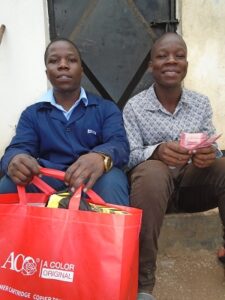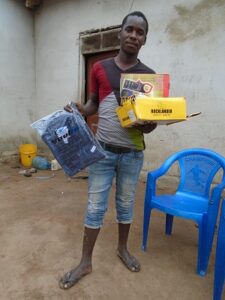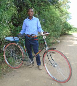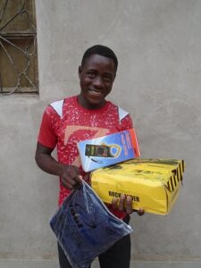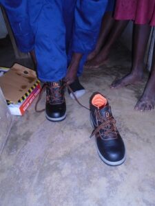 Natürlich erhalten sie von uns auch Arbeitskleidung/Kleidung für Berufsschule und Arbeitsbehelfe (Overall, Schuhe, Arbeitsbehelfe). Jean Paul erhielt auch ein Fahrrad, um aus dem Dorf zu seiner Arbeitsstelle zu gelangen. Japhet – unser Vertrauensmann – organisiert alles bestens und begleitet sie während dieser Zeit.