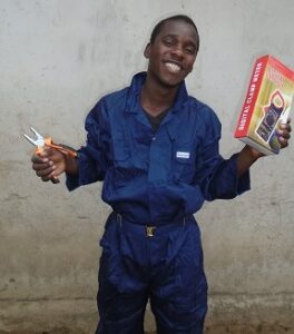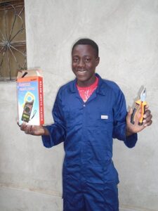 Für Hoja Simeo (20 J.), Musa Julius (22 J.) und Pascal (23 J./Vollwaise/) finanzieren wir eine zweijährige Elektrikerlehre mit Berufsschule und Jean Paul (20 J.) – aus unserem Projektdorf Ngeleka – entschied sich für eine Tischlerlehre.
