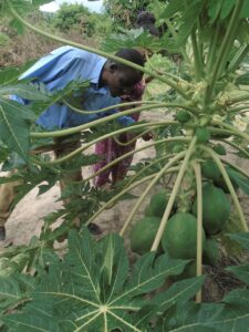 Der Mann pflanzte Auberginen, Paprika, Wassermelonen, Mais und verschiedene Gemüsesorten. Die Frau pflanzte verschiedene Arten von Fruchtbäumen – Avocados, Orangen, Bananen, Papayas usw. Sie pflanzte auch Maniok.