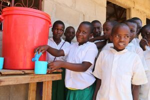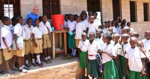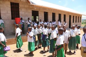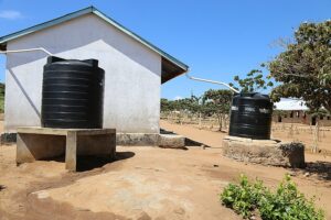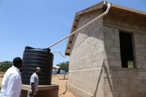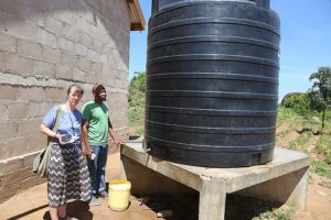 Auch hier erhielten bereits 400 Schüler Schuluniformen. Wir sammeln alle Dachwässer in 3 x 3000 Liter Wassertanks als Trinkwasser, das vor den Klassenräumen in großen Behältnissen zur Verfügung steht.