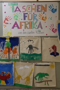 Kunstvolle handbedruckte Stofftaschen mit Afrika-Motiven entstanden im Unterricht. Die SchülerInnen der zweiten Klassen bieten die letzten Exemplare zum Verkauf (€ 10.–) an. Im Foyer der Dr.-Karl-Köttl-Schule können Sie diese Taschen jederzeit bestaunen und auch erwerben. Der gesamte Reinerlös kommt unserem Hilfsprojekt zu Gute.