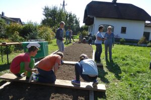 Im Oktober ist die ideale Zeit für das Setzen der Knoblauchzehen, die dann am Schulschluss. geerntet und von den SchülerInnen am Bauernarkt in St. Georgen/A. auch verkauft werden. Aus der Ernte 2015 gibt es noch kleine Bestände, die noch zu kaufen sind.