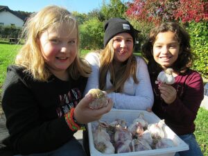 Im Oktober wurden nicht weniger als 14 kg Knoblauch-Knollen vorsichtig zerlegt und etwa 1500 „Zehen“ gesetzt. Natürlich setzen wir unbehandelte Bio-Ware, um im Sommer 2017 wieder beste Qualität ernten zu können.