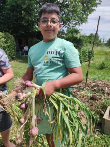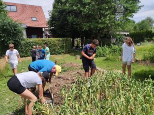 Die Bilder zeigen die Schüler*innen der 2a. Sie haben im Herbst gesetzt und sind auch bei der Ernte aktiv.