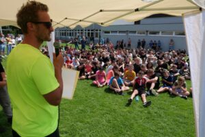 Die jungen Läuferinnen und Läufer hatten sich im Vorfeld Sponsoren – vor allem aus Reihen der eigenen Familie – gesucht, die für jede gelaufene Runde einen bestimmten Betrag spenden konnten. Unter dem Beifall der Zuschauerinnen und Zuschauer wuchsen die Schülerinnen und Schüler regelrecht über sich hinaus.