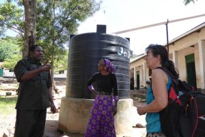 Bei unserem Besuch in der Mkolani school trafen wir uns mit der Direktorin Neldomenia. Sie war über unseren Besuch sehr erfreut, zeigte uns die Sammelbehälter für die Dachwässer (2 x 5000 L), welche vor allem als Trinkwasser wertvolle Verwendung finden.