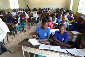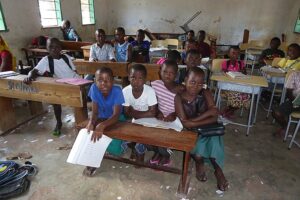 In dieser Klasse werden 132 Kinder unterrichtet – fast alle sitzen auf dem Boden.