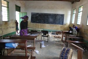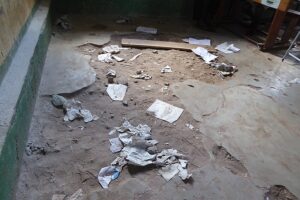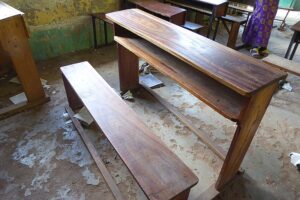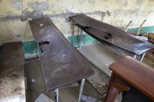 Die Fotos zeigen eine vierte Klasse mit völlig desolatem Mobliar und Böden.