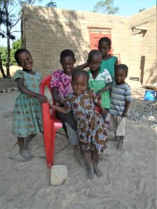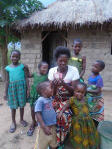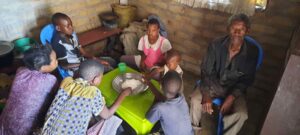 Einigen besonders Bedürftigen haben wir sogar ein einfaches Haus gebaut, damit sie wenigstens ein Dach über dem Kopf haben. Das Foto zeigt „Mektilda 2“ mit ihren 4 Kindern und Kindern aus der Nachbarschaft, die auf den neuen Möbeln für das Haus, das wir im Sommer 2021 errichtet haben, probesitzen. Manche Kinder sitzen zum ersten Mal in ihrem Leben auf einem Hocker. Die Bewohner der neuen Häuser haben auch alle ein Regal, einen Tisch, Sessel, Hocker, Geschirr, Matratzen, Bettwäsche und Kleidung erhalten. Das Haus für „Mektilda 2“ ist unser 9. Haus, das wir seit 2013 für die Ärmsten errichten konnten.