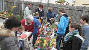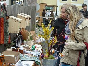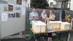 Im Frühjahr 2014 bereiten wir uns für Ostern auf 3 Info – und Verkaufsstände am Gelände des St. Georgener Bauernmarktes vor. Nistkästen, viele Tonarbeiten, Osterhasen aus Birkenholz, Blumenschmuck,Stofftaschen aus afrikanischen Stoffen und vieles mehr boten wir zum Verkauf an.