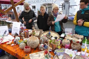 Wir verteilten neue Infos über unser Projekt und boten Tonarbeiten, Selbstgebasteltes, Marmeladen, Stoffe aus Tansania u.v.m. zum Mitnehmen an. Ein paar fleißige SchülerInnen, aber auch hilfsbereite Erwachsene (Erika Hofinger, Karin Richardt, Sabine Huber, Andrea und Lisa Hagler) unterstützten uns am Info-Stand und/oder spendeten auch selbstgemachte Handarbeiten.