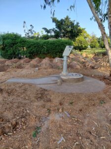 Die Errichtung war herausfordernd: Zwei Grabungen per Hand waren nötig, weil die erste mit 38 Metern zu wenig Wasser lieferte. Erst die zweite brachte Erfolg und ausreichend Wasser für eine verlässliche Versorgung.