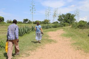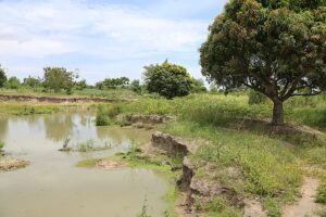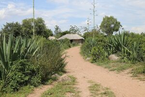 Mit den Bildern laden wir Sie ein, das Dorf etwas besser kennen zu lernen. Es ist Ostern 2017, die Regenzeit klingt aus, noch ist viel saftiges Grün zu sehen und es ist kaum vorstellbar, dass die tiefen Sandböden in nur wenigen Wochen trocken sind und durch die große Hitze – so wie im Vorjahr – die Felder und Früchte verkommen. Die ersten Anzeichen sind schon jetzt zu beobachten, obwohl an einigen tieferen Lagen noch Wasserlacken stehen.